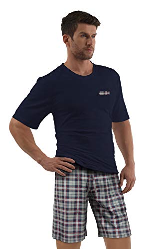 E.VIP® Pigiama da uomo Chris S 325A in 100% cotone, Blu marino, S