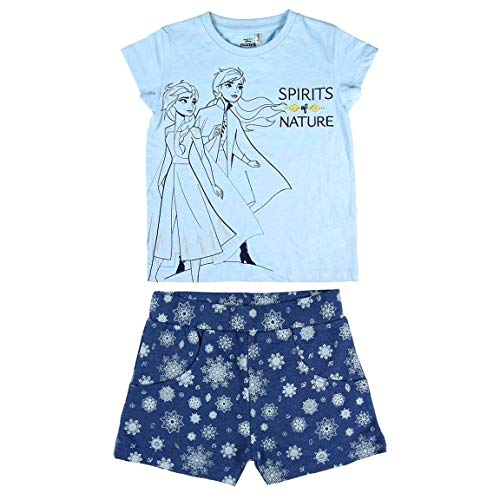 Pigiama Corto Estivo 2 Pezzi Bambina Frozen 2 Elsa & Anna Disney | 100% Cotone Morbido | Celeste/Blu | 2-3-4-5-6 Anni (Frozen 2 - Spirits of Nature, 2 Anni)