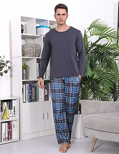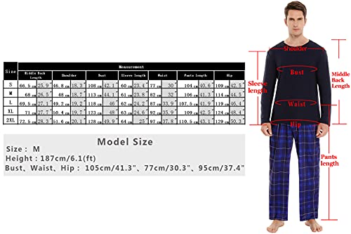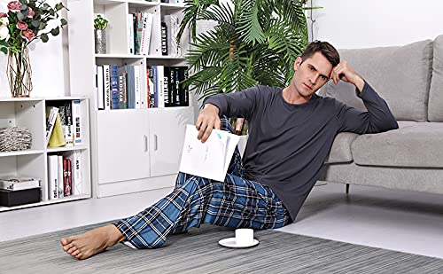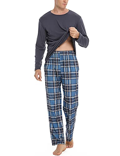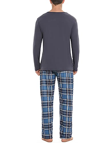 NA Pigiama Uomo Cotone Lungo Pigiama per Uomo Invernale Girocollo Maniche Lunghe Pigiama Due Pezzi da Uomo a Tasche Laterali Navy Grigio Scuro M