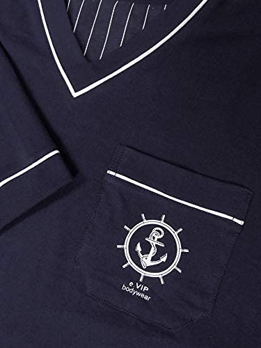 E.VIP - Pigiama da uomo Jim L 683 in puro cotone, marine/bianco, XL