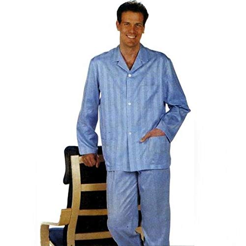 PIER MORI'S PDA Pigiama Uomo Lungo Riga Raso 100% Cotone Popeline Made in Italy (IT, Numero, 48, Regular, Regular, Bleu)