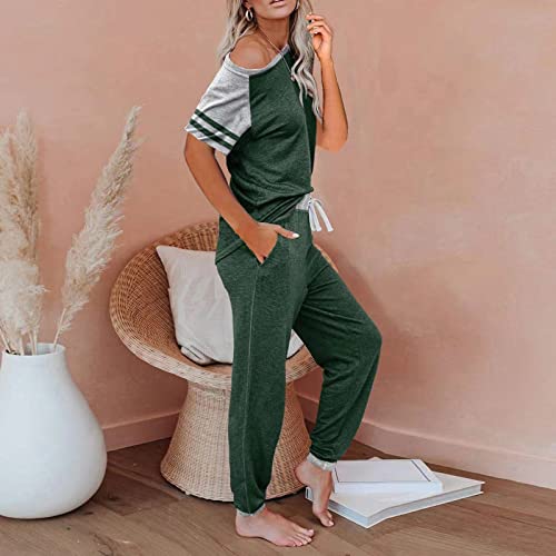 Pigiama Leggero Pigiama da Donna Set da Notte a Maniche Corte con Pantaloni Lunghi Pjs Set da Notte con Stampa Pantaloncini Corti Pigiama (Army Green, L)