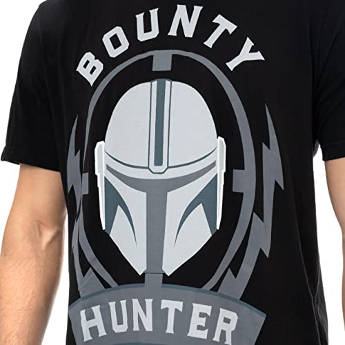 Un top nero che mostra l'iconico casco Mandalorian incorniciato dalle parole "Bounty Hunter" e dal titolo "The Mandalorian". Abbinato a fondi pj grigi modellati con il simbolo del teschio Mythosaur
