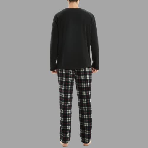 Pigiama da uomo a maniche lunghe in pile termico con pantaloni a quadri Nero L