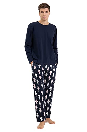 PAWO Pigiama Uomo Natale, Due Pezzi a Maniche Lunghe, Tuta Calda da casa, Motivi Natalizi, Perfetto per Un Regalo di Natale, Comodo, 100% Cotone, Certificato Oeko-Tex Standard, Ronald XL