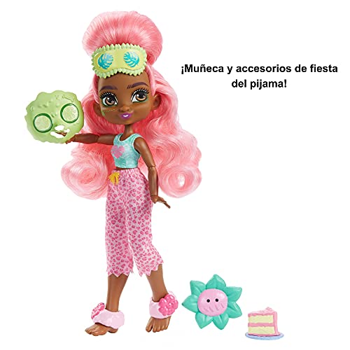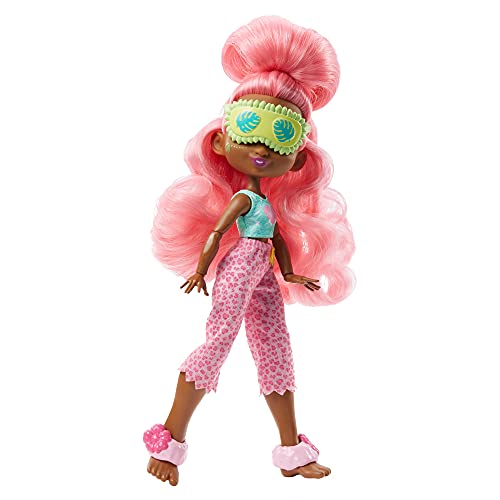 Cave Club Pigiama Party Preistorico Bambola Fernessa Snodabile con Capelli Rosa e 3 Accessori, Giocattolo per Bambini 4+Anni,GTH03