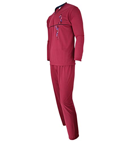 Humy Pigiama da uomo in due pezzi, pigiama lungo, a righe, in 100% cotone (da M a 3XL), [M1] blu., M