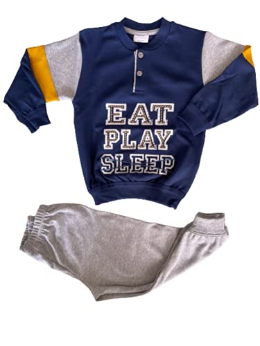 Pigiama Serafino Bambino Lungo Cotone Interlock - Primero (Art. 13253 Blu/Grigio Melange, 5 Anni)
