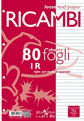 Pigna 00629061R, Ricambio non rinforzato, Rigatura 1R, righe per medie e superiori, Carta 80g/mq, Pacco da 80 Fogli