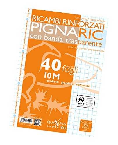 Pigna 021945910, Ricambio con Banda Rinforzata, Rigatura 10, quadretti 1 cm per 1° elementare, Carta 80g/mq, Pacco da 40 Fogli