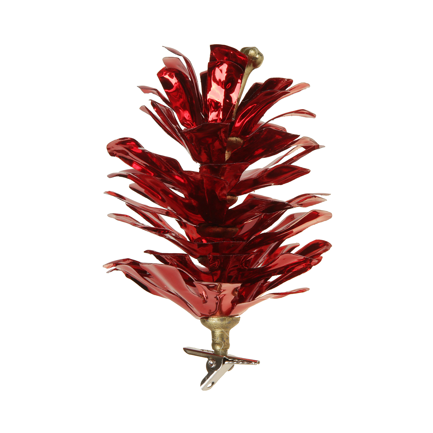 Originale decorazione a forma di pigna rossa in pvc, per donare all'albero di Natale una nota di luce e vivacità. Facile da posizionare sui rami grazie all'apposita clip.