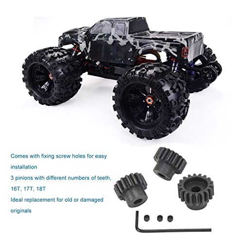 3 TIPI DI DENTI: Fornisci 3 tipi di pignoni con denti diversi, 16T 17T 18T, in modo da avere più scelte nel rapporto di trasmissione e migliorare le prestazioni della tua auto telecomandata.
