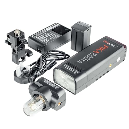Contenuto della confezione: 1 x PIXAPRO pika200 corpo, testa, 1 x Bare Head, 1 x Bare bulb testa 1 x Speedlite Flash tubo, 1 x Batteria, 1 x Caricabatteria, 1 x cavo di alimentazione, 1 x supporto inclinazione, 1 x Custodia da trasporto