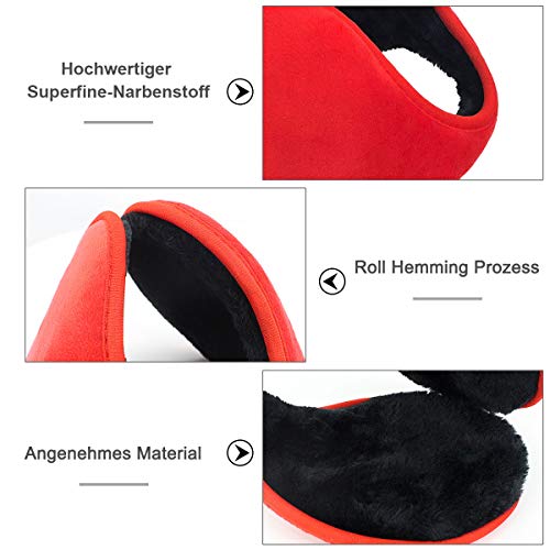 PIKABU Paraorecchie Caldo - Paraorecchie per Donna e Uomo,Earmuffs Invernali in Peluche Accessori Invernali Paraorecchie Per Esterni Scaldini Per Lo Sci Corsa (Rosso)