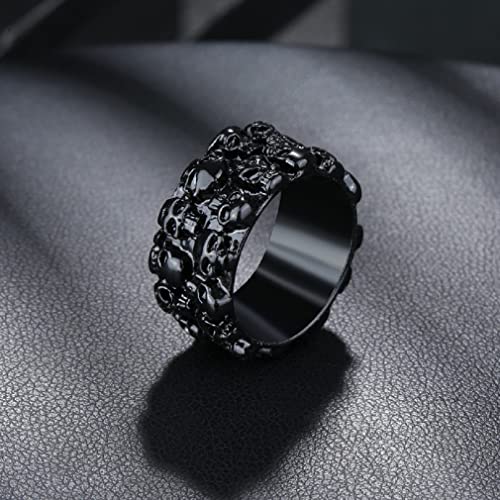 【ANELLO TESCHIO DI MORTE】 Design speciale in stile punk con testa di teschio, aspetto vintage, trendy e classico. È un fantastico anello con teschio per il tema di Halloween. Il teschio scheletro nero è un modello magico. Questo anello con teschio gotico può portare fortuna a chi lo indossa e renderlo più attraente.