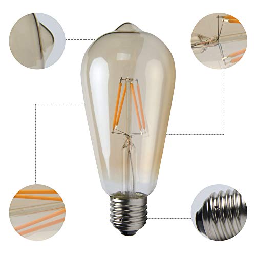 PIKOVIC Lampadina Edison E27 Vintage Dimmerabile Lampadina a LED 4W Retro Stile Lampada Decorativo luce Antico Lampadina della filamento, 6 pezzi