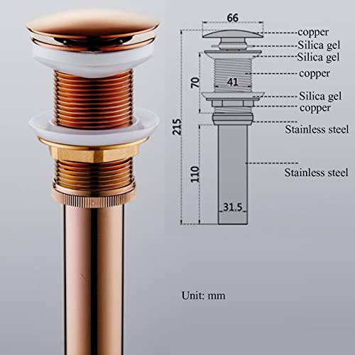 Piletta Click Clack senza Troppo Pieno Piletta Lavabo Bagno Ottone G1 1/4“ Piletta Bidet Click Clack,Oro Rosa A