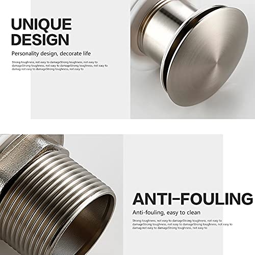 WXDL Piletta Lavabo Bagno Senza Troppopieno, Click Clack Universale Set di Scarico Valvola Pop Up per Lavabo/Lavandino Nichel Spazzolato Pop UP Bidet Piletta