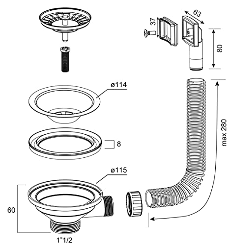 Piletta 3"1/2 Lavello Inox e Ceramica c/Troppopieno flessibile