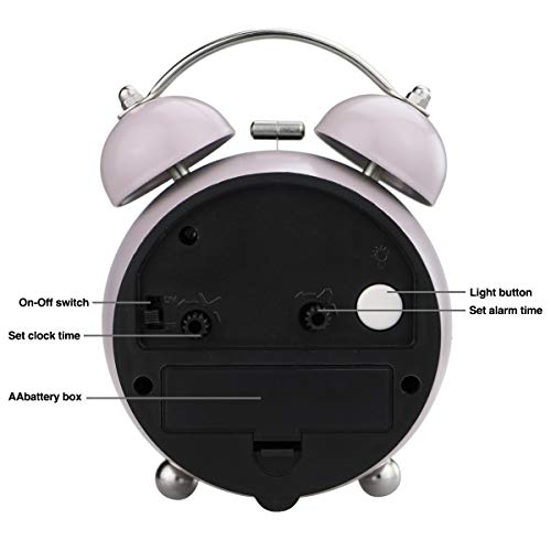 PILIFE 3.5" Mini Twin Bell Alarm Clock analogico per Bambini, Comodino Battery Alarm Clock, Non Ticking/Carino/Carino