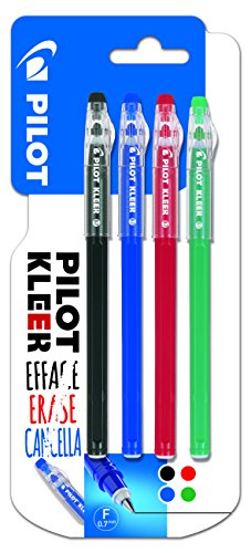 Pilot - Confezione da 4 penne Kleer cancellabili, colore: nero/blu/rosso