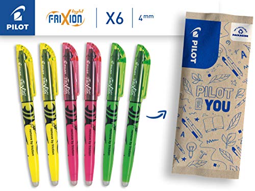 PILOT FriXion Light - Evidenziatori, 6 pezzi (2 Giallo / 2 rosa /2 verde) & FriXion Fineliner, Set Da Cinque Penne A Pennarello Cancellabili Con Inchiostro Sensibile Al Calore, Multicolore