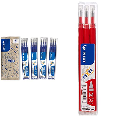 Pilot Frixion Ricarica per penna roller, 0,7 mm, 12 pezzi blu, 4 SET 3 PZ & BLS-FR7-R-S3 Refill per Penna a Sfera Frixion Ball, 0.7 mm, Confezione da 3, Rosso
