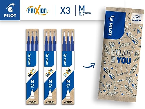 Pilot FriXion, 3 set da 3 Ricariche per penna cancellabile Frixion Ball e Frixion Ball Clicker, Refill Frixion, Colore Blu, Punta Media
