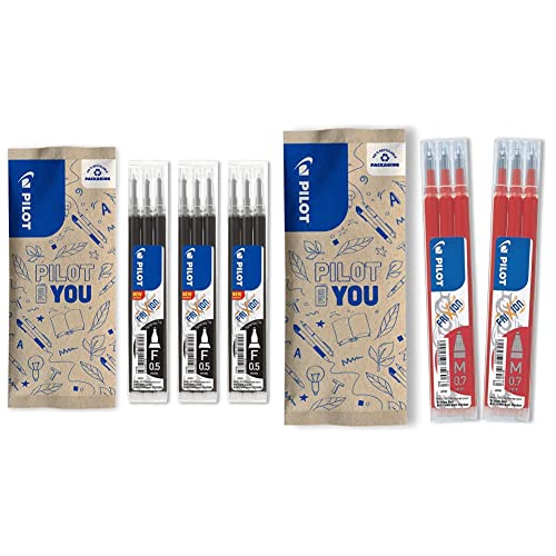 Pilot FriXion Set di 3 ricariche per penna cancellabile, compatibili con FriXion Point & 2 set da 3 Ricariche per penna cancellabile Frixion Ball e Frixion Ball Clicker, Colore Rosso