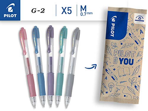 PILOT G2-7, set da 5 penne gel (rosa metallizzata, blu, viola, verde, argento)
