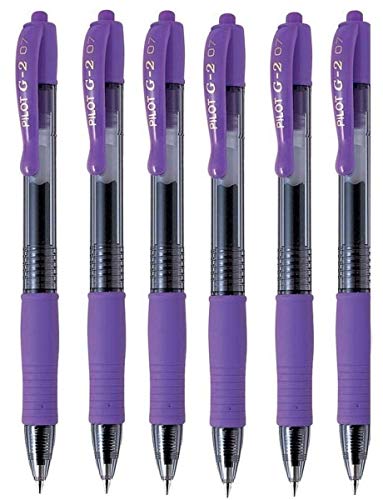 Pilot G2 07 Viola, colore penna a sfera retrattile, con inchiostro Gel, punta 0,7 mm, tratto da 1 mm, tratto ricaricabile BL-G 2-7 (confezione da 6)
