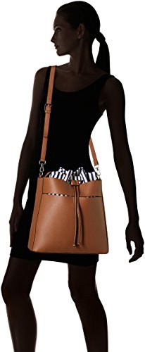 Pimkie - Borsa a tracolla bimateriale finta pelle marrone interno righe blu e bianco donna