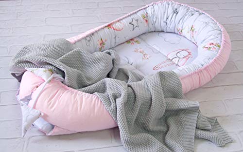 Pimko - Multifunzionale Babynest bozollo per bambini riduttore per Letto neonato lettino da viaggio culla 100% cotone 55x90cm (Dream)