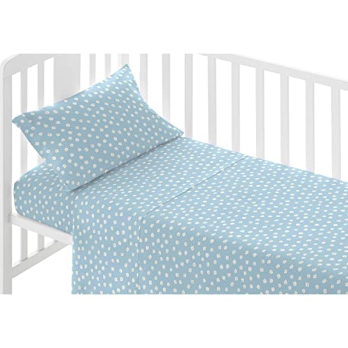 PimpamTex Set Completo Lenzuola Culla e Lettino Neonato, 3 Pezzi Lenzuolo Sotto, Sopra e Copri Cuscino 100% Cotone - (Lettino 50x80 cm, Margarita Celeste)