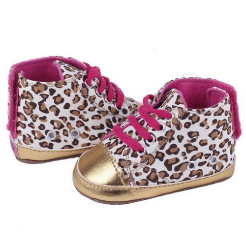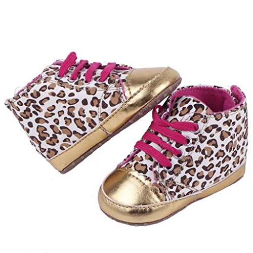 Pina-Scarpe Leopardo Morbide Camminare Sneak per Bambino Ha 6 Mesi a 12Mesi Oro Modello di Leopardo