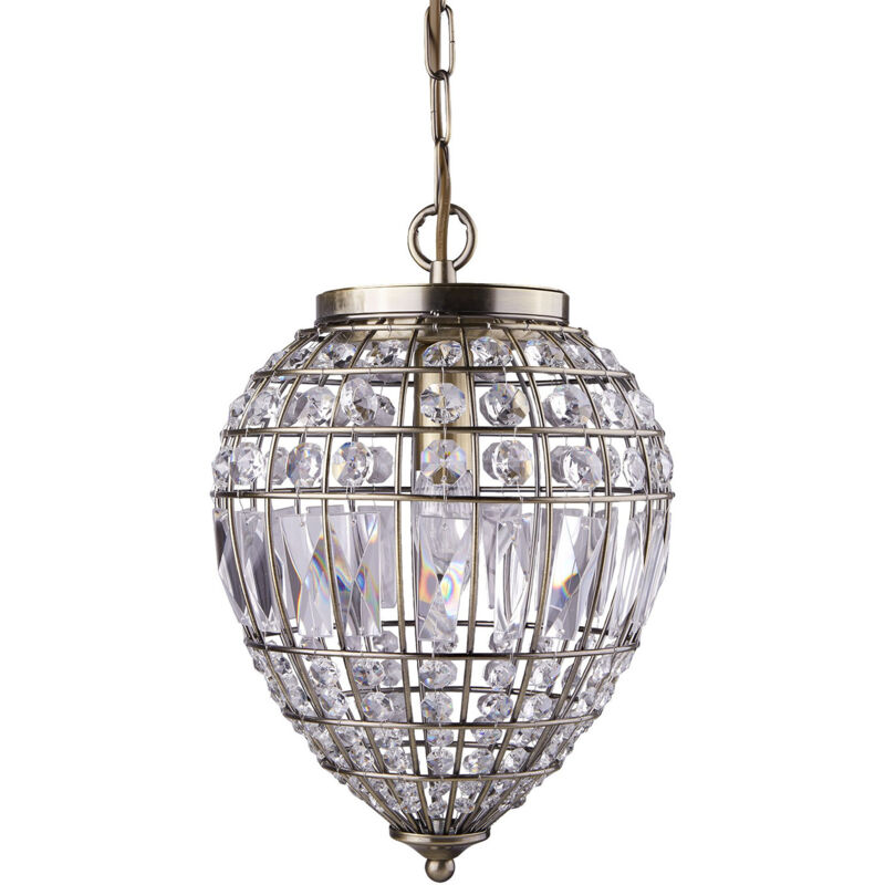 Searchlight Pineapple - Pendente a goccia a 1 luce in ottone antico con cristalli di vetro, E14 | Finitura: ottone antico | Classificazione IP: IP20 | Altezza (cm): 93 | Diametro (cm): 23 | Numero di luci: 1 | Tipo di lampada: E14 | Dimmerabile: Sì | Potenza (max): 60 | Peso (kg): 2 | Classe: 1 (a terra) | Lampadina inclusa: no