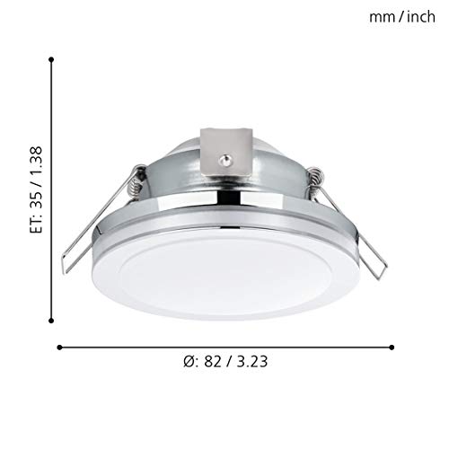 Il faretto da incasso rotondo a LED in acciaio cromato e plastica bianca è resistente agli spruzzi dacqua (IP44) e si inserisce nella tendenza moderna