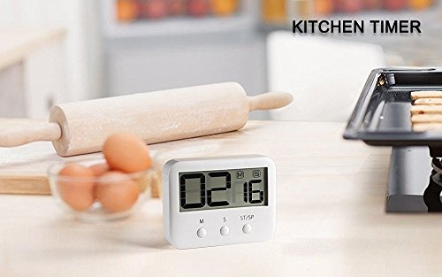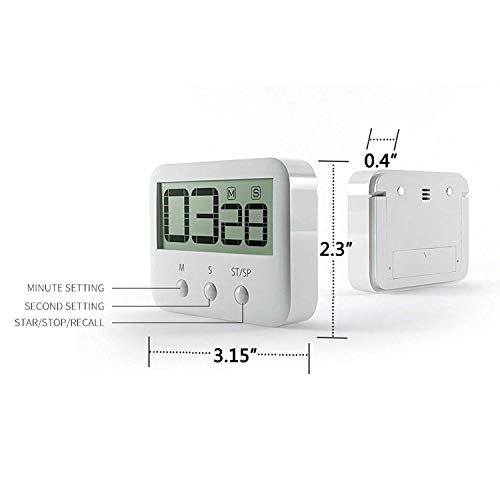 PINGKO Timer Digitale Da Cucina, Tasti Grandi, Allarme Forte, Con Magnete, Supporto, Conto Alla Rovescia, Tempo Massimo 99 Minuti 59 Secondi - Bianco