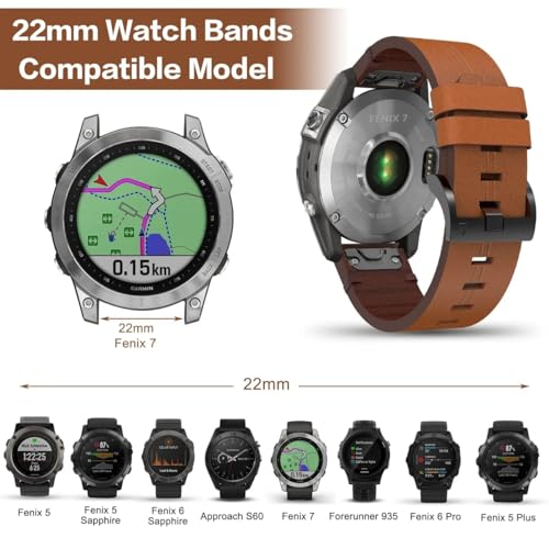 PINHEN Compatibile con Cinturino Garmin Fenix 7 - Cinturini in Pelle Accessori Cinturino di Ricambio a Sgancio Rapido per Fenix 7/Fenix 6/Fenix 5