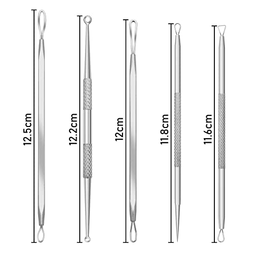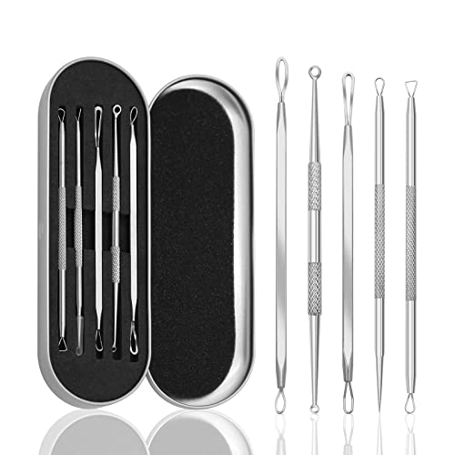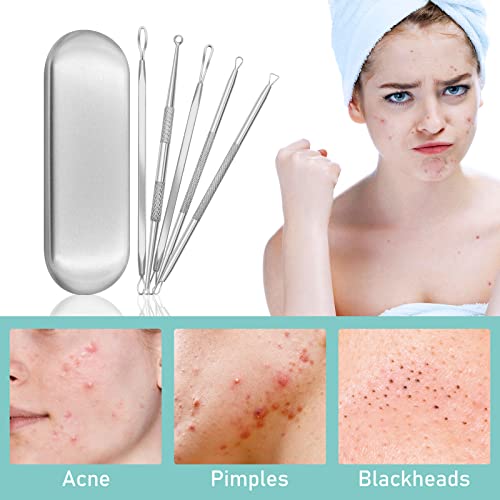 Pinkiou Strumento di rimozione di punti neri Kit di brufoli di punti neri Estrattore di macchie Whitehead Popping Zit Strumento di rimozione di punti neri, 5 in 1 con custodia in metallo