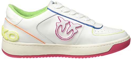 Pinko Bondy 1 Basket Sneaker Pelle V, Scarpe da Ginnastica Donna, ZW5_Bianco/Fuxia Fluo, 35 EU