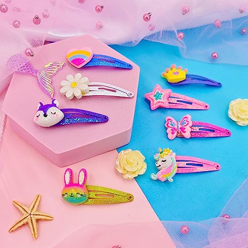 PinkSheep Fermagli per capelli a farfalla unicorno per bambine, 8 paia/16 pacchetti di accessori per capelli per bambine, spille per capelli a forma di fiore di coniglio