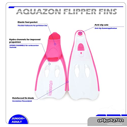 Pinne AQUAZON FLIPPER, pinne da snorkeling, pinne da immersione, pinne da nuoto per bambini, ragazzi, adulti per lo snorkeling e il nuoto in colori alla moda, colour:pink-white, size:27-30