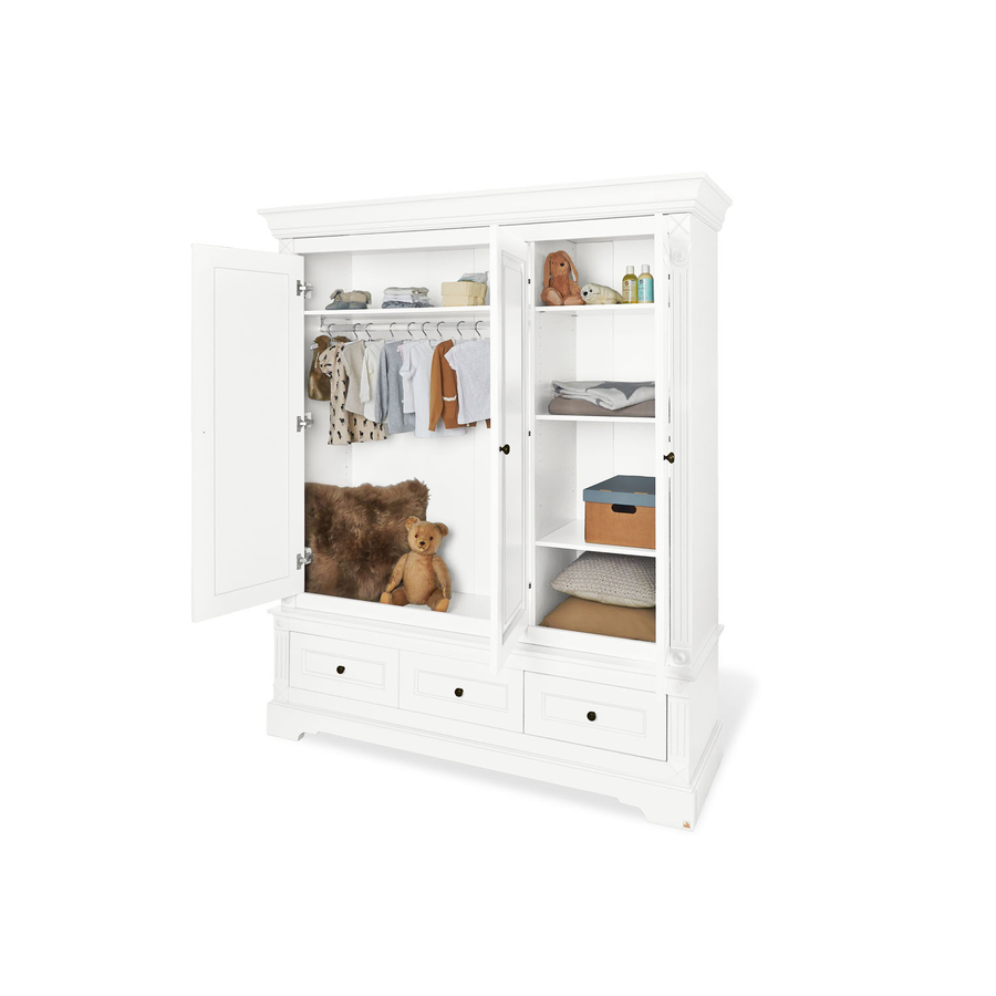 Pinolino sviluppa e realizza dal 1997 un'ampia gamma di mobili per bambini, accessori e giocattoli. Vasta gamma di assortimento nei tre stabilimenti. La combinazione vincente degli articoli, il buon servizio assistenza clienti ed i prezzi convenienti fanno di Pinolino il giusto Partner. L'ambizioso obiettivo della società è quello di ottenere la massima soddisfazione a tutti i livelli. Materiale di alta qualità, precisione e la passione nei dettagli rendono Pinolino uno specialista nei mobili. Scopri tutta la collezione Emilia. Amplia la cameretta con gli altri mobili della collezione. Dettagli del prodotto: Colore: bianco opaco Materiale: MDF, laccato Dimensioni: Ampiezza x Lunghezza x Altezza 166 x 58 x 208 cm 3 ante 2 cassetti 4 ripiani regolabili in altezza 1 asta appendiabiti orizzontale Chiusura ammortizzata Con modanature ricamate Manici in metallo di ottima manufattura Inclusi nella spedizione: Armadio Attenzione: Le decorazioni NON sono incluse nella spedizione!