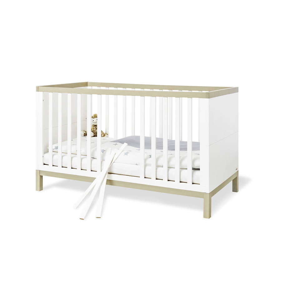 Con grande attenzione ai dettagli, Pinolino sviluppa, testa, produce e commercializza la sua gamma di mobili, accessori e giocattoli per bambini di alta qualità e progetta gli spazi di vita dei più piccoli dal 1997. Così facendo, Pinolino rappresenta i valori della famiglia, della felicità, della sicurezza e dell'individualità. La garanzia Pinolino -Plus include l'estensione del periodo di garanzia legale a 10 anni dalla data di acquisto. Dimostra quanto l'azienda sia convinta dell'eccezionale qualità dei suoi prodotti. La serie ' Light ' è disponibile sia come camera per bambini che come set economico. La camera dei bambini è composta da un lettino, un ampio fasciatoio e un armadio a 3 ante. Il set economico consiste in un lettino e un ampio fasciatoio. Dettagli del prodotto: Culla Colore: bianco / natura Materiale letto: pannello piatto pressato, laccato Materiale base e telaio superiore del letto: Pino massiccio, laccato Superficie di sdraio: larghezza x lunghezza 70 x 140 cm Dimensioni: larghezza x lunghezza x altezza 75 x 145 x 84 cm Altezza a 3 pieghe regolabile da 22 cm a 32 cm e 51 cm 3 pioli di scorrimento Peso: 36 kg Distanza dal pavimento: 12 cm Base e telaio superiore del letto di alta qualità tiger in legno di pino massiccio, verniciato color acero Convertibile in Junior letto e divano letto per bambini Unità di cambio Colore: bianco / naturale Materiale della carcassa: pannello piatto pressato, laccato Materiale maniglie e base: pino massiccio, verniciato Dimensioni: larghezza x profondità x altezza 115 x 55 x 98 cm Dimensioni con fasciatoio: larghezza x profondità x altezza 115 x 78 x 98 cm Altezza di cambio: 90 cm 3 cassetti aden Self-Soft-Close L'unità di cambio è rimovibile L'unità di cambio può essere montata a sinistra, al centro o sul lato destro Piedi e maniglie dei mobili di alta qualità in legno di pino massiccio, verniciati in color acero Armadio Colore: bianco / naturale Materiale del corpo: tavola piatta pressata, laccata Materiale base e