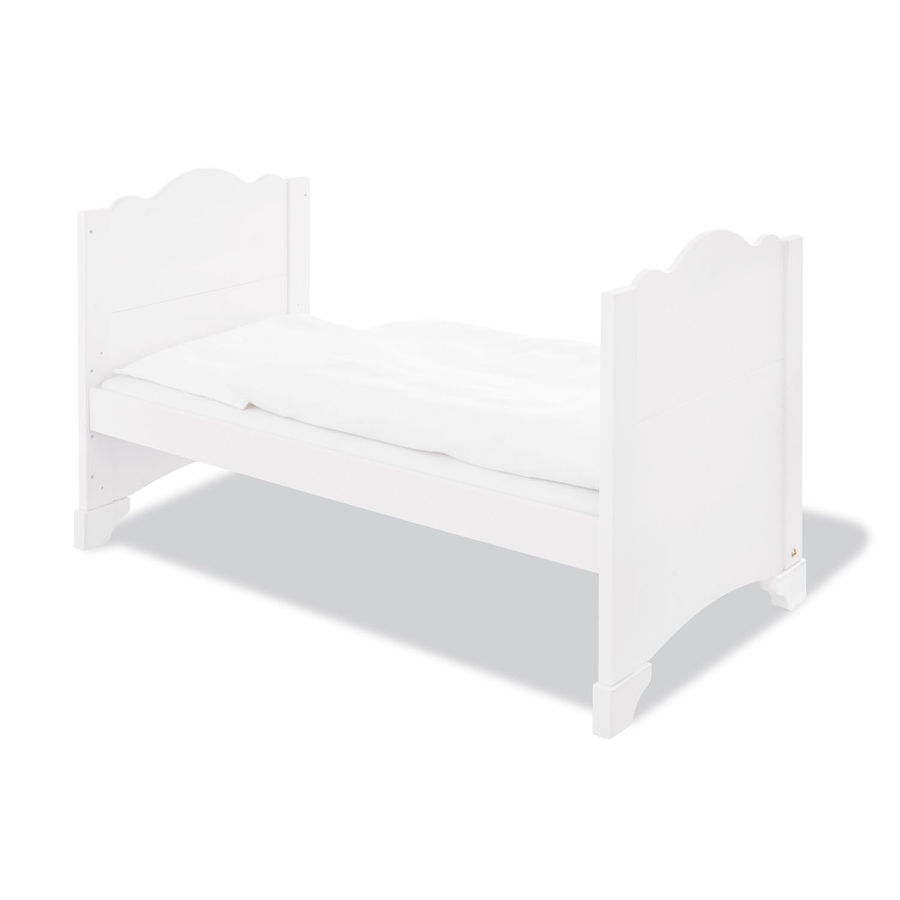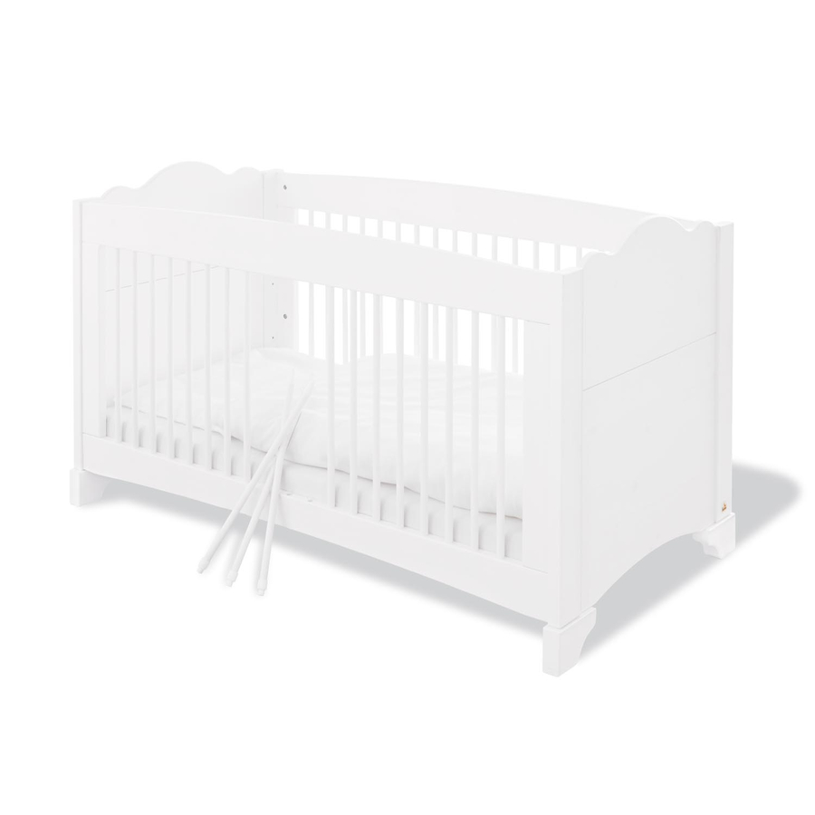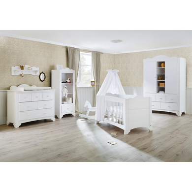 , precisione e la passione nei dettagli rendono Pinolino uno specialista nei mobili. Dettagli del prodotto: Lettino Colore: bianco Materiale: pino massiccio, smaltato Struttura in legno visibile Superficie di riposo: Larghezza x Lunghezza 70 x 140 cm Dimensioni: Larghezza x Lunghezza x Altezza 79 x 148 x 86 cm Rete a doghe regolabile in altezza in 3 livelli 17cm / 32cm / 49cm 3 x barre removibili Trasformabile in letto junior / divano per bambini Mobile fsciatoio, ampio Colore: bianco Materiale: pino massiccio, smaltato Struttura in legno visibile Superficie per il cambio: Larghezza x Lunghezza 85 x 75 cm Altezza fasciatoio: 94 cm Dimensioni senza fasciatoio: larghezza x profondità x altezza 127 x 55 x 109 cm Dimensioni con fasciatoio: larghezza x profondità x altezza 127 x 77 x 109 cm Superficie per il cambio removibile 3 x pannelli di sicurezza laterali Chiusura soft close Armadio a 2 ante, grande Colore: bianco Materiale: pino massiccio, smaltato Struttura in legno visibile Dimensioni: Larghezza x Profondità x Altezza 126 x 64 x 190 cm 2 ante 1 ripiano centrale con 5 sezioni aperte Chiusura soft close 1 asta appendiabiti 5 ripiani regolabili in altezza Incluso nella consegna: Lettino 2 pannelli laterali per trasformare il lettino in letto junior Mobile fasciatoio ampio Fasciatoio Armadio a due ante grande Attenzione: Mensole, scaffale, materasso e decorazioni NON sono inclusi