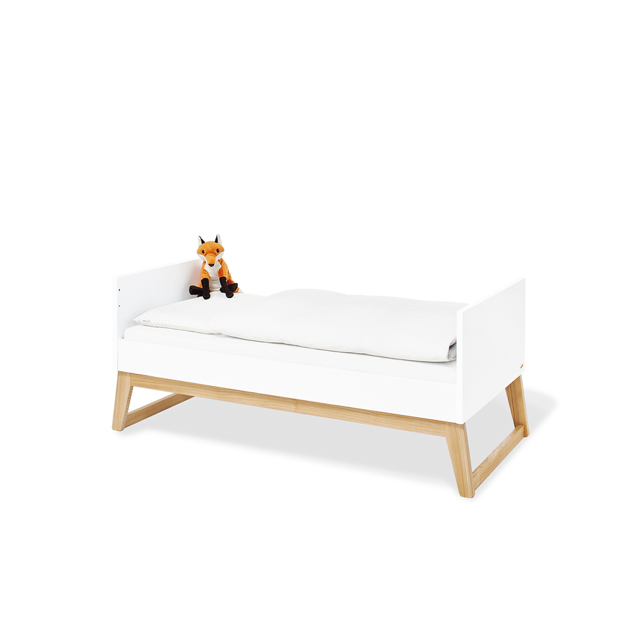 Con grande attenzione ai dettagli, Pinolino sviluppa, testa, produce e commercializza la sua gamma di mobili, accessori e giocattoli per bambini di alta qualità e dal 1997 progetta gli spazi abitativi dei più piccoli con questo. Pinolino è l'acronimo dei valori della famiglia, della felicità, della sicurezza e dell'individualità. La Garanzia Pinolino -Plus comprende l'estensione del periodo di garanzia legale a 10 anni dalla data di acquisto. Dimostra quanto l'azienda sia convinta dell'eccezionale qualità dei suoi prodotti. dettagli del prodotto: Colore: bianco / naturale Materiale letto: MDF, laccato Materiale sezioni del piede: frassino massiccio, laccato Superficie di sdraio: larghezza x lunghezza 70 x 140 cm Dimensioni: larghezza x lunghezza x altezza 76 x 151 x 94 cm Regolazione in altezza di 3 volte da 33 cm a 49 cm e 63 cm 3 pioli di scorrimento Peso: 47 kg Max. capacità di carico: 30 kg altezza libera da terra: 19 cm Convertibile in letto e divano per bambini su Junior Incluso nella consegna: Culla Telaio a doghe Pagine di conversione Attenzione: Materasso e piumino non sono inclusi.