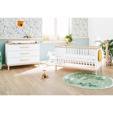 Con grande attenzione ai dettagli, Pinolino sviluppa, testa, produce e commercializza la sua gamma di mobili, accessori e giocattoli per bambini di alta qualità e progetta gli spazi di vita dei più piccoli dal 1997. Così facendo, Pinolino rappresenta i valori della famiglia, della felicità, della sicurezza e dell'individualità. La garanzia Pinolino -Plus include l'estensione del periodo di garanzia legale a 10 anni dalla data di acquisto. Dimostra quanto l'azienda sia convinta dell'eccezionale qualità dei suoi prodotti. La serie ' Light ' è disponibile sia come camera per bambini che come set economico. La camera dei bambini è composta da un lettino, un ampio fasciatoio e un armadio a 3 ante. Il set economico consiste in un lettino e un ampio fasciatoio. Dettagli del prodotto: Culla Colore: bianco / natura Materiale letto: pannello piatto pressato, laccato Materiale base e telaio superiore del letto: Pino massiccio, laccato Superficie di sdraio: larghezza x lunghezza 70 x 140 cm Dimensioni: larghezza x lunghezza x altezza 75 x 145 x 84 cm Altezza a 3 pieghe regolabile da 22 cm a 32 cm e 51 cm 3 pioli di scorrimento Peso: 36 kg Distanza dal pavimento: 12 cm Base e telaio superiore del letto di alta qualità tiger in legno di pino massiccio, verniciato color acero Convertibile in Junior letto e divano letto per bambini Unità di cambio Colore: bianco / naturale Materiale della carcassa: pannello piatto pressato, laccato Materiale maniglie e base: pino massiccio, verniciato Dimensioni: larghezza x profondità x altezza 115 x 55 x 98 cm Dimensioni con fasciatoio: larghezza x profondità x altezza 115 x 78 x 98 cm Altezza di cambio: 90 cm 3 cassetti aden Self-Soft-Close L'unità di cambio è rimovibile L'unità di cambio può essere montata a sinistra, al centro o sul lato destro Piedi e maniglie dei mobili di alta qualità in legno di pino massiccio, verniciati in color acero Incluso nella consegna: Culla pagine di conversione Unità di cambio Unità di cambio Attenzione: il mater