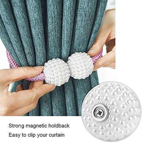 Pinowu Fermatende magnetici per tenda 2 pezzi, con perle decorative, per tende piccole, sottili o trasparenti, Fermatenda (rosa)