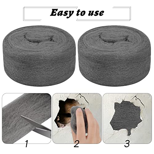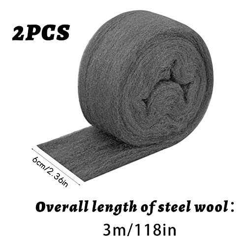 Pinsheng Lana d'Acciaio, 3 m x 2 Pezzi Lana Acciaio Topi Grado 0000 per Riempire Spazi Vuoti e Buchi in Casa Giardino Box Auto, Lana di Filo Lucidatura Lana d'Acciaio di Pulizia, 190g